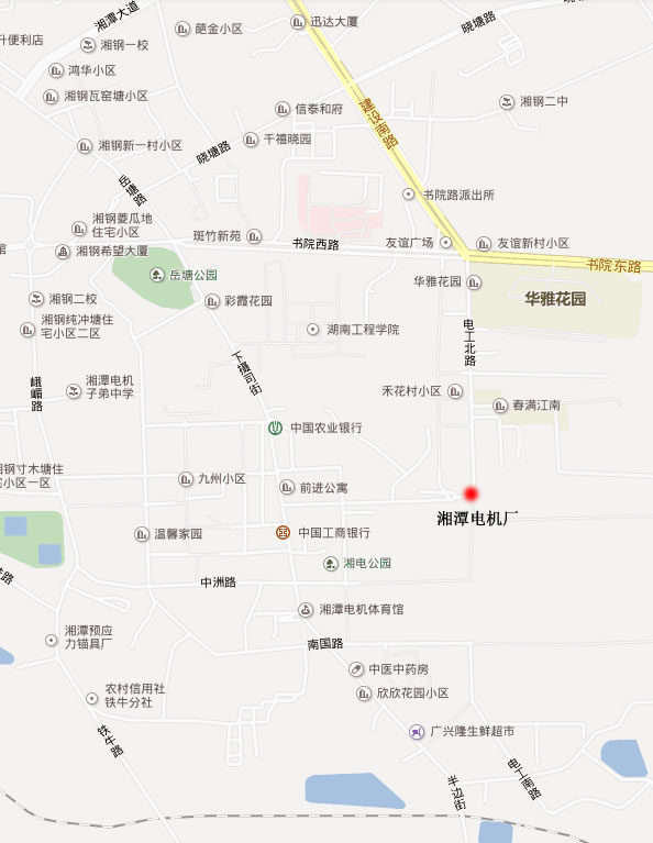 湘潭電機廠位置處于中國湖南省湘潭市岳塘區(qū)電工北路66號